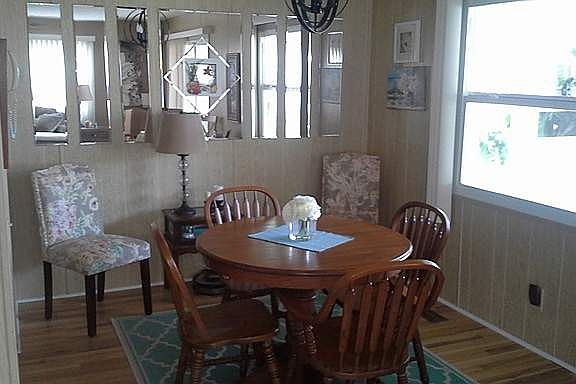 Do not miss this wonderful updated 2 bedroom, 2 bath double wide. Newer appliances and refinished counter tops, tub and shower. Tastefully decorated and comes partially furnished. Beautiful tile and laminate flooring. Replacement windows throughout and all lighting has been replaced. Very active 55 plus community with loads of amenities and located within minutes of the beach. Lot rent covers everything. One of the best in town. Water, sewer, trash, lawn care and cable. VERY PRETTY COMMUNITY!