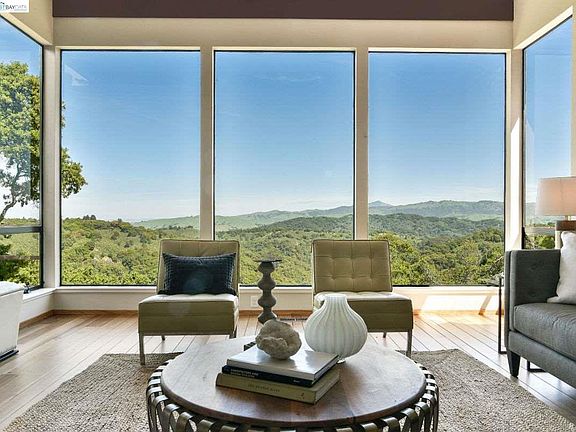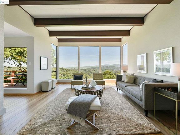 Fabulous mid-century on wooded six acres with mesmerizing views of Mt Diablo and parklands. 5bed, 3bath house with big family room, updated kitchen, and amazing views from all bedrooms. In-law unit with full bathroom. Incredible 5-room workshop with half bath, ideal for machine shop, artist space, or office work. Woodland paths, vast terraced orchard, flat yard. Utter tranquility in a charming neighborhood. A naturalist's dream!
