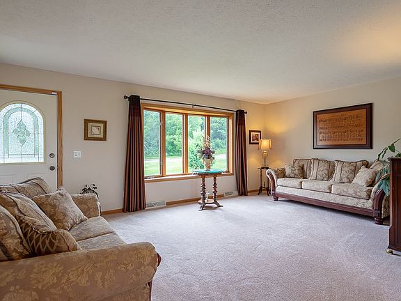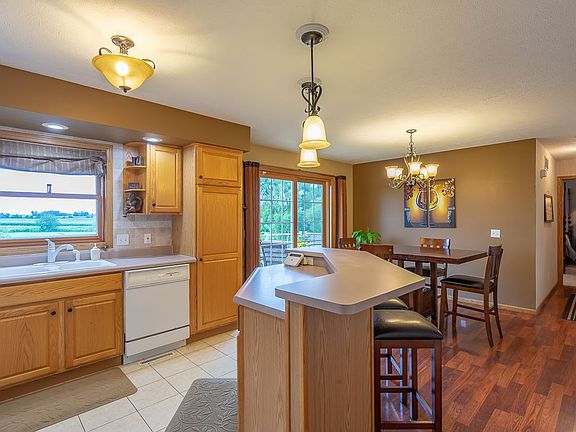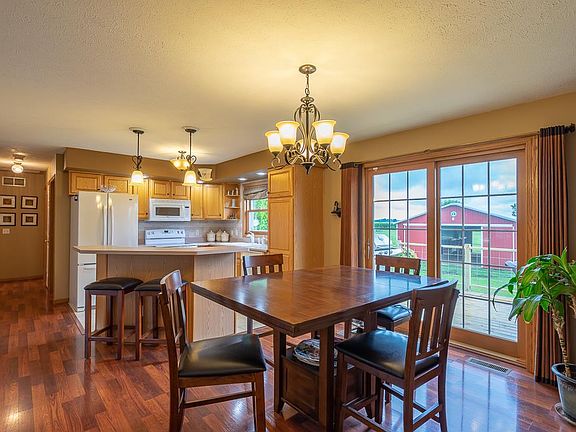 DO NOT MISS OUT! Beautiful view on 9.66 Acres. Blacktop road. 42x60 Barn with 2 horse stalls and electricity. Several acres has electric fence and is currently divided into pastures. Lake with its own dock, island and bridge. There is electric run to the dock and solar lighting around the bridge and dock. A creek runs through the property. A new bridge has been built over the creek. There is a heated 2.5 car detached garage for all of your toys. There is a shed too. The house was built in 2000. The kitchen, dining room and master bedroom look out over the land. The kitchen is open to the living room and informal dining room. The dining room walks out to a deck great for grilling and enjoying the view. Two bedrooms and a full bathroom complete the main level. The walkout basement is set up with a family room, weight room and bar area. This is really a great house and property! Check it out today!