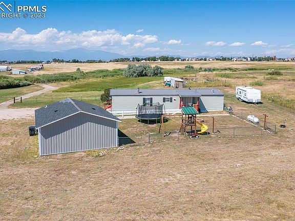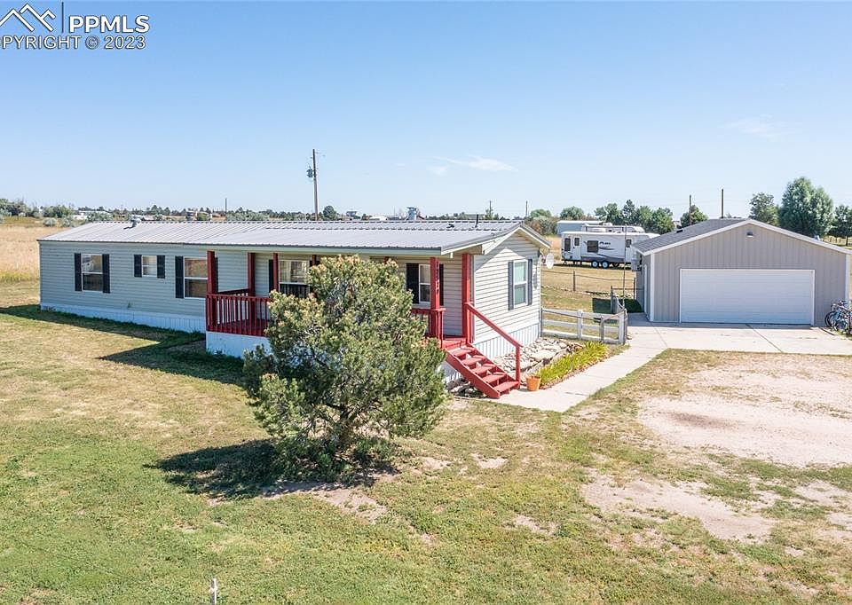 Yes, you can have your cake and eat it too! A secluded, fenced, 5.10 acre parcel with domestic well, on a dead end (Pinto Pony is no longer a through road), with fantastic Pikes Peak and Front Range views from covered front porch! Literally minutes away from grocery stores (Safeway and a future King Soopers), Walmart Super Center, Walgreens, restaurants/fast food (Guadalajara Family Mexican, Wendy’s, Slim Chickens, Sonic and more!), auto parts, urgent care and Big R! Plenty of room for your big boy, or girl, toys and an awesome spot to work on them too… the garage is oversized two car (new garage door 2 years ago) that is heated and air conditioned. Highway 24/Woodmen Road/Falcon Highway are conveniently moments away… if your commute is to Peterson or Schriever Space Force bases you're golden! Additional amenities include: central air conditioning, wood burning stove, metal roof (on dwelling), covered front and back porches, vinyl siding, fenced backyard and dog run, loafing shed, master bedroom with walk-in closet, kitchen pantry.