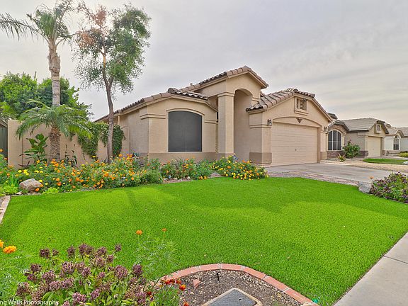 Nice-looking single level Avondale home located in, Rancho Santa Fe subdivision. Driving up you'll recognize the lovely year round, low maintenance, artificial grass in the front yard. This 4 bedroom, 2 bathroom residence includes a sitting room as you walk in the door to a formal dining room with its own foyer to the backyard. Move in ready property with freshly painted interior, brand new carpet throughout, tile and wood flooring. Open kitchen concept with an island to a spacious family room, don't miss the adorable built in glass shelving cabinet. Walk in pantry to the laundry room, 2 car garage and a bonus sink in the garage! You'll appreciate the backyard as it has 2 covered patios, a fence for safety, refreshing Pebble Tec pool including a calming water feature and an above ground spa.