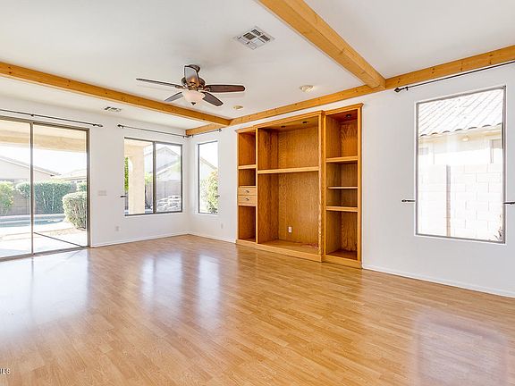 STUNNING! This wonderful home is immaculate & in incredible condition. It also includes an impressive front view & well maintained from & backyard. The floor layout is highly desirable due to common area being in the center of the home & master bedroom being on opposite end of additional bedrooms. Hard wood flooring provides that special warm feeling. The long beams in the living room showcases the great design and architectural taste. The large kitchen includes a lot of cabinet space, black-modern appliances, gas range, flood lighting, large breakfast bar & neutral colors. The large master bedroom extends to a remodeled master bathroom with an impressive dual shower. The tropical backyard has a refreshing swimming pool, extended patio & many mature trees. Close to schools & shopping.