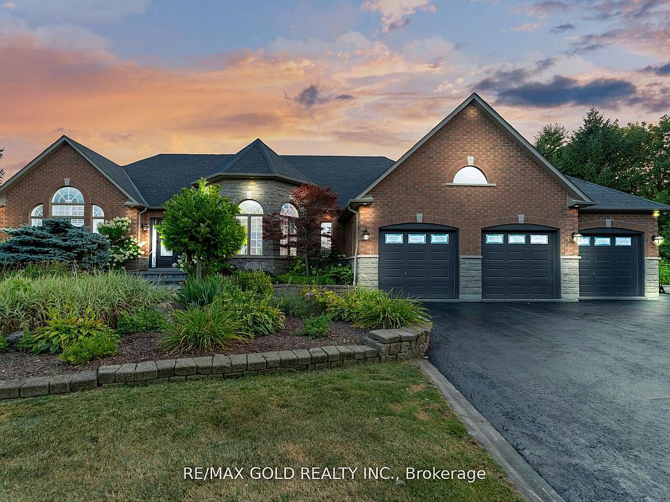 Stunning Custom Built Bungalow! approx.. OVER 5400 sq. ft of finished living space. 3+1 Bedroom, All brick and stone facade, with country style living close to so many amenities. This 1 acre lot is an OASIS featuring lush landscaping, full sprinkler system, large 2-tier deck with a gazebo , in ground heated swimming pool, brick cabana and utility shed. 3 car custom garage and parking for over 12 cars easily. The Interior boosts a free flowing layout with hardwood and ceramic flooring throughout. Extra large rooms with large windows. Quartz counter top and back splash in the kitchen, gas cooktop, built in S/S range, all S/S appliances. Security system, and central vac. Fully finished basement with double French door access to the backyard, full wet bar, kitchen, wood burning fireplace, games room, exercise room, office, full bath, and bedroom. Ideal for an in-law suite or simply and entertainers dream! This property is a definite GEM in a fantastic Caledon location! MUST SEE to appreciate!