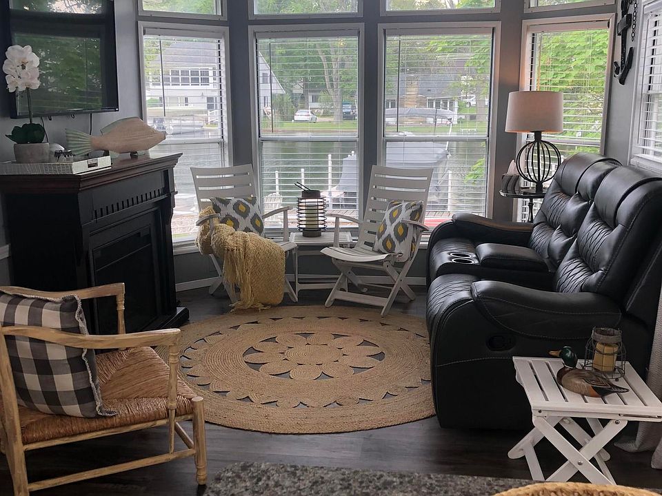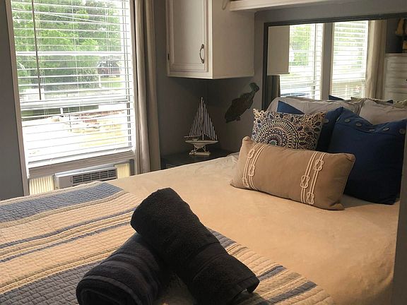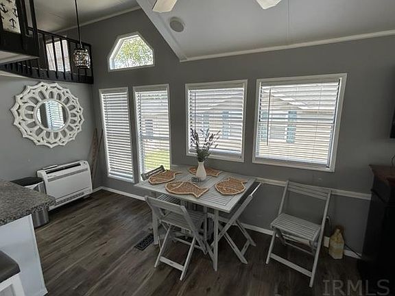 This Park Model offers turnkey spacious living and is the MOST affordable property to Lake Wawasee. Use for your family or makes an excellent vacation rental. Master bedroom on lower unit with a divided loft that offers a full bed and a twin bed. Plenty of parking, covered concrete patio, New split unit AC/Heat, Up to 6 boat slips with 45' of frontage.