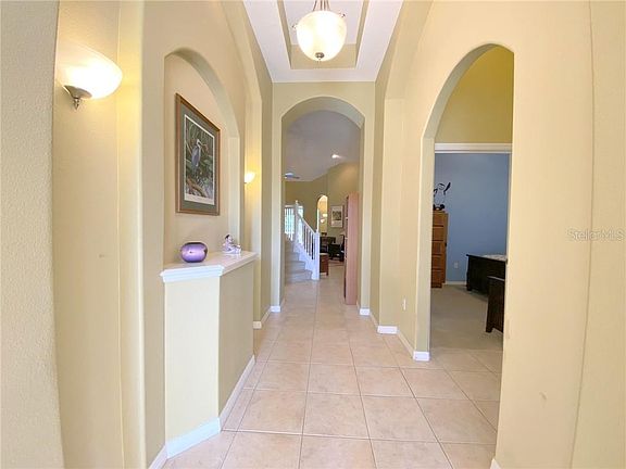 - Interior Features: Ceiling Fans(s), High Ceiling(s), Master Bedroom Downstairs, Open Floorplan, Split Bedroom, Walk-In Closet(s), Solid Wood Cabinets, Thermostat, Kitchen/Family Room Combo, Living Room/Dining Room Combo, Solid Surface Counters, Cathedral Ceiling(s), Vaulted Ceiling(s), In Wall Pest System, Tray Ceiling(s)