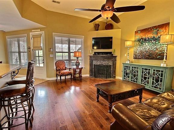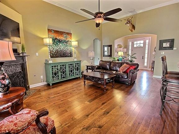 Such great curb appeal at this lovely home in the Villages at White Oak! This 4 bedroom, 3 bath home has so much to offer: Open floor plan, great room sizes, soaring ceilings, gorgeous engineered hardwood flooring, fabulous master suite with sitting area and incredible bath w/ 2 walk-in closets, split bedroom plan; fabulous kitchen w/ granite, s/s appl, breakfast bar, pantry; tall doors down, archways, "bull nose corners," laundry rm, Bonus Room, covered patio, great backyard, 2 car att garage.