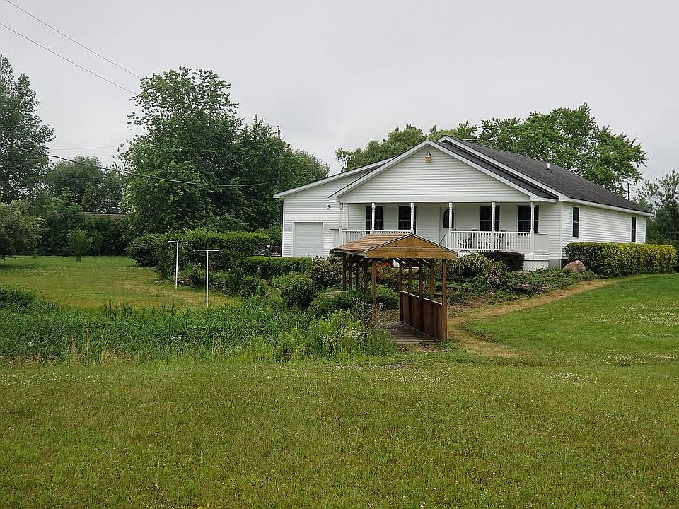 For Sale By Owner- Listed here is a unique ranch home located within eyeshot of Lake Ontario. A 5 minute walk from your back porch to the water's edge! This well-maintained single level rests on just under 3 acres. Property features your own private waterway that gives access to Lake Ontario! Difficult to find this kind of wide-open land so close to the lake. 35 minutes to Brockport, 40 minutes to Lockport, and approximately one hour from either Rochester or Buffalo. Home was built in 2004 with spacious rooms: 2 bedroom, 2 bathrooms, spacious closets and a sprawling living area. The new owners would have little trouble finding room to add an office or 3rd bedroom into this open floor plan. The garage was designed to hold the owner's vintage houseboat (possible availability with home sale), and provides a 12' overhead door and room for your RV, Boat or 2 vehicles end to end. Property has a poly-decking back porch overlooking a tiered landscape down to the covered bridge and waterway. Taxes are approx $4,422/yr.