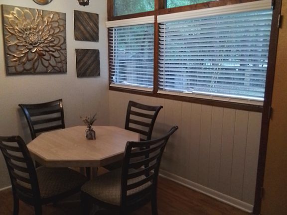 Month to month lease. This 3- bedroom, 1- bath with river access for fishing, kayaking is perfect for nature lovers. It has a back & spacious front deck for entertaining or relaxing. It comes furnished with everything you need. It's close to shopping & restaurants. Pet deposit of 250 per animal. Water & trash included. Owner pays garbage & water. Renter pay for utilities.
