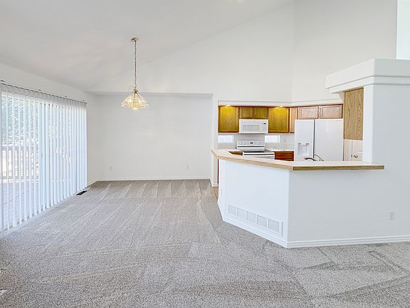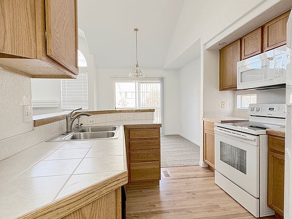 Nice end unit townhome in the Chateaux at Aurora Park. This two bed three bath has a great set up with a main floor and second floor primary bedroom type set up as well. The main floor boasts vaulted ceilings and an open living set up with the kitchen, dining and living rooms all open to each other. This main floor also has brand new carpet and wood floors, huge windows and a sliding door to the patio area letting in tons of natural light. The kitchen includes all appliances and a good sized pantry allowing storage and good prep space for the cook in your party. Heading upstairs there is a large loft with a closet, big second room with two walk-in closets, and the second full bath. Don't forget the full sized, unfinished, basement great for your extra storage, play room, or a workshop type area. This unit also includes full sized laundry, two car attached garage, and balcony area. Tenant is responsible for all utilities