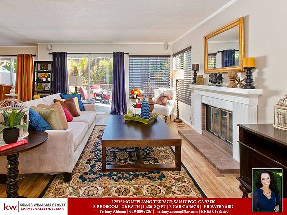 OPEN HOUSE SUNDAY 3/20!!! CONTACT LISTING AGENT TIFFANY ABBIATE FOR ADDITIONAL INFORMATION OR TO SCHEDULE A PRIVATE SHOWING: TIFFANY ABBIATE: 619-889-7207 OR Tiffany.Abbiate@kw.com Single Family Ownership With Condo-Like Pricing.... No HOA - No Mello Roos - On A Cul-de-Sac?! Hurry Over To Tour The Newest Winwood Beauty To Hit The Market! Relax After A Long Day In Front Of Your Cozy Brick Fireplace Or Enjoy A Fun BBQ On A Warm Summer's Night WIth Friends And Family In Your Newly Designed Private Backyard. New Stamped Concrete Patio, Newly Installed Drain System, And New Auto Drip/Sprinkler System For Front And Rear Slope / Planters. The Gorgeous Stacked Block Wall & Stucco Fence/Wall Is Coupled With The Recent Landscaping & Surround Sound Wiring And Lighting Throughout. Recent Property Updates/Upgrades Include Granite Slab Countertops & Designer Backsplash In Kitchen With Tons of Storage Including Slide Out Shelves. New Interior/Exterior Paint, New Mirrored Wardrobe Doors, New Light Fixtures, New Window Coverings, Raised Panel Doors, Glass Shower Enclosures, New Tile Surround at Master, Ceiling Fans in Bedrooms and A/C. One Of The Largest Driveways In The Entire Development Provides Convenient Parking For Extra Cars & Guests. www.12575MontellanoTerrace.com