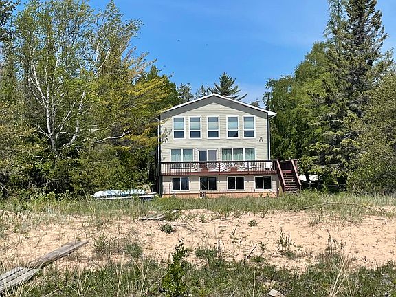 Prime location on Lake Michigan within the Hiawatha Sportsman's Club! This home has 100 feet of pristine sandy beach on the lake, with a large elevated deck for prime lake views. There are four bedrooms and 2 1/2 baths, plenty of room for friends and family. The living room and master bedroom both have amazing lake views through expansive windows. There is a full unfinished basement, perfect for beach toy storage. There is a wood-burning fireplace in the living room to take the chill out of the cool fall evenings. Perfect year-around home for any outdoor enthusiast. Plenty of space to create a work-from-home office, hi-speed internet is available.There is a beautiful screened in sun room on the back of the home, as well as a detached 30x34 garage.