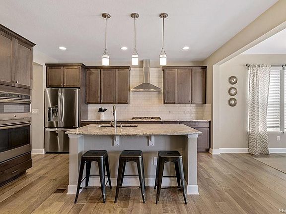 Gorgeous 2-story home in Peoria Place! The main floor features a stunning open layout. The kitchen includes granite counters, full tile back-splash, 42" soft close maple cabinets, gas stove, counter-depth refrigerator, upgraded stainless appliances, pendent lighting and a massive island! Family room with gas fireplace and tumbled marble tile surround. Spacious main floor office with crown molding. Dining room is adjacent to the kitchen and patio with vaulted ceilings and ample seating space. The covered patio offers an expansive and secluded retreat. The second story has a huge master with crown molding, 5 piece master bath and large walk-in closet. Three additional bedrooms/one with an ensuite bath and loft space. Additional upgrades include gorgeous gray-wash flooring, 8' doors on the main floor, fiberoptic wiring throughout, 6" baseboards, water softener, closet system in the master closet, and custom lighting throughout. Close to Park Meadows, DTC, Light Rail, and much more!