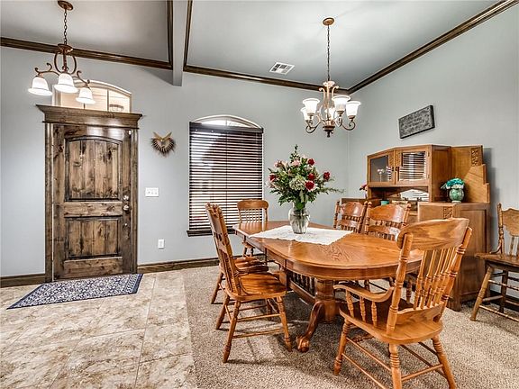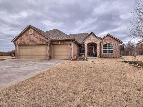 Wow! What a nice place to call home. This home offers 3 bedrooms plus study, 2.5 baths, 3 car garage with storm shelter. Granite counters in kitchen and baths, formal dining, new paint throughout, beautiful maple woodwork, 2" blinds, plantation shutters on both exterior doors. Rain Softener water system throughout the home. Crown molding, new water well that is also hooked up to the irrigation. Hook up for generator. Refrigerator, washer, dryer, 2 TV that are mounted all stay, appliances are less than 2 yrs old. Backyard offers a nice retreat with nice firepit with slate walkway to it. Fairly new storage building stays. Totally fenced backyard. You will like what you see here!