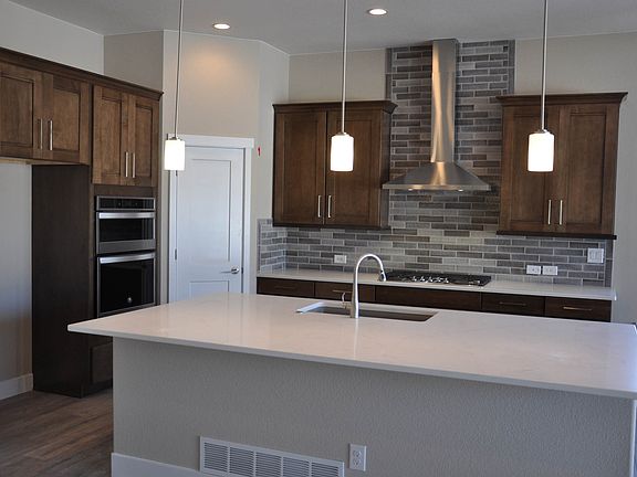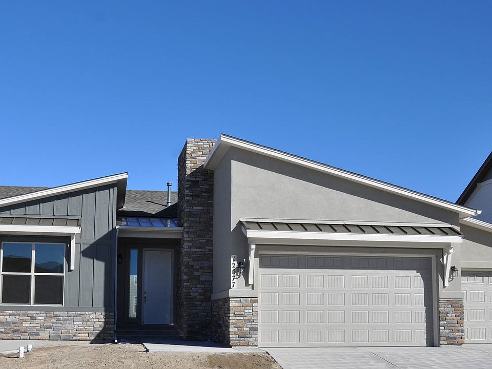 Ready in Jan.. Hillspire ranch plan with 3 car garage in Flying Horse Milan. 4 bedroom 3 bath home. Gas fireplace in great room and recreation room. Air conditioning. Gas line to range. Oil rubbed bronze hardware. Finished basement includes 1ft taller ceilings plus 2 beds, 1 bath and recreation room with wet bar. Exterior living includes 10x10 patio, patio cover and gas line.
