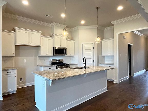 - Features: Crown Molding, Granite Counters, Kitchen Island, Pantry, Recessed Lighting, Smooth Ceiling, Wood Floor