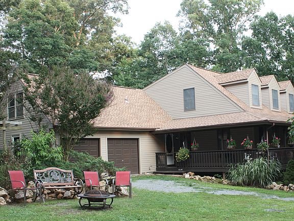Lovingly landscaped 3 BR, 3 1/2 baths on 12.2 acres. 2-car garage, new roof, wraparound porch, patio. Kitchen: Corian counter tops, oak cabinets, SS appliances. Fireplace in rec room, wood stove in finished basement. All baths upgraded. Hardwood, tile on main level; carpet upstairs. Barn with hayloft, three 12' x 12' stalls, water & elec, 5.2 acres of fenced pasture. 24' x 12' poultry building.