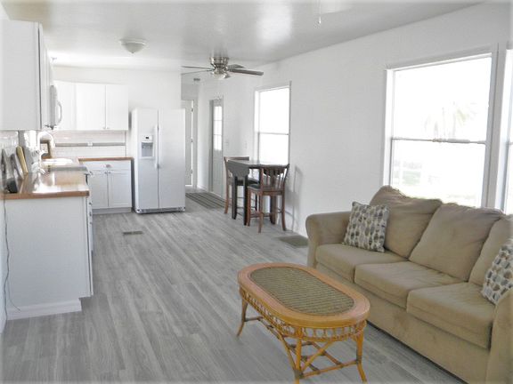Completely remodeled mobile home; new flooring, new tile, entire interior is drywall, new electric and plumbing. New 3.5 ton A/C installed in 2019. Added screen room and extended shed for more storage.