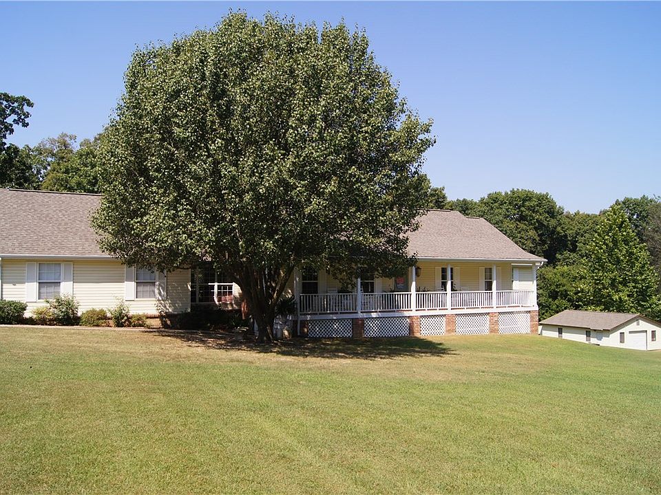 One owner custom built charming home on beautiful tree canopied 4.6 acres. This home offers an attached 600 sqft guest suite with a separate entrance, complete with kitchen, living room, bedroom, bath, washer, and dryer. Game room above garage with separate A/C. 800 sqft detached workshop, garden area, walk out basement storage, and 2 car garage. Beautiful setting and close to town. Recent property updates include new roof, hot water heater, and A/C units in both the main house and in-law suite. Property eligible for RD Loan.