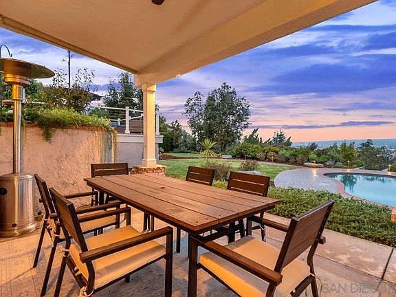 Escape to your dream home in Horizon Hills, where you'll be greeted by a stunning 5 bedroom, 3 1/2 bathroom gem nestled on the backside of Mt Helix. From the moment you walk through the front Arcadia doors, you'll be swept away by the open and functional layout, neutral tones, owned solar, and upgraded fixtures that create an inviting cozy atmosphere. With gorgeous flooring throughout, this home exudes elegance and luxury, plus fully paid solar! Cook up your favorite meal in the chef's kitchen featuring upgraded ovens, built-in wine fridge, custom cabinetry, farmhouse-style sink, and a HUGE kitchen island that's perfect for entertaining guests or spending quality time with family. With a spacious playroom and office downstairs that can easily be converted to a bedroom, this home boasts a total of 6 bedrooms, making it perfect for growing families. Step outside to your ultimate entertainer's backyard, where you can enjoy all the sunny SoCal days. Perfect your short game on the green, take a dip in your sparkling pool, fire up the built-in BBQ for some delicious steaks, watch the kids play on the playground, or unwind with a glass of wine by the fireplace - this backyard has it all! After a fun day, grab a book and relax in your peaceful sitting room. When the day is done, head upstairs to your private master bedroom balcony, where you can gaze at the stars and take in breathtaking valley views. This home truly has it all, and is just minutes away from shopping, dining, and entertainment, making it the perfect place to call home. Don't miss out on this Mt Helix gem!