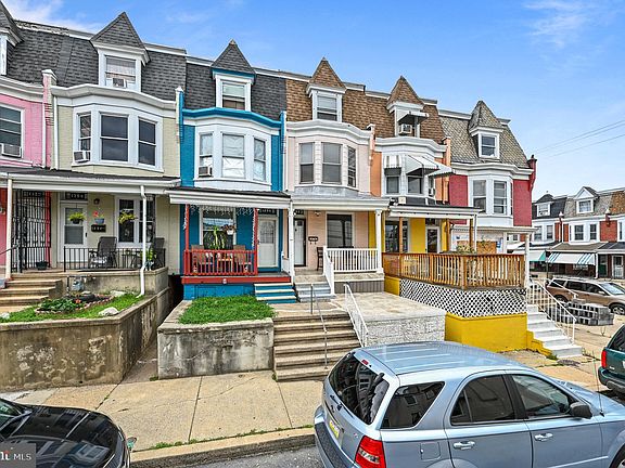 Well cared for Victorian style brick row home with 5 bedrooms, 1 full bath, and 1,550 square feet of living space. A large inviting front porch welcomes you into the spacious living room followed by an adjacent a formal dining room with built-in corner cabinet, updated kitchen with ceramic tile floor, gas stove, built-in microwave, and counter seating. Laminate flooring throughout the main level for easy clean-up and minimal maintenance. There are 3 bedrooms and an updated bathroom with tile surround tub on the second floor and 2 bedrooms on the third floor ensure there is room for everyone. The home is equipped with a gas furnace and hot water heater, ensuring comfort and efficiency year-round. Convenient paved off-street parking in the back.