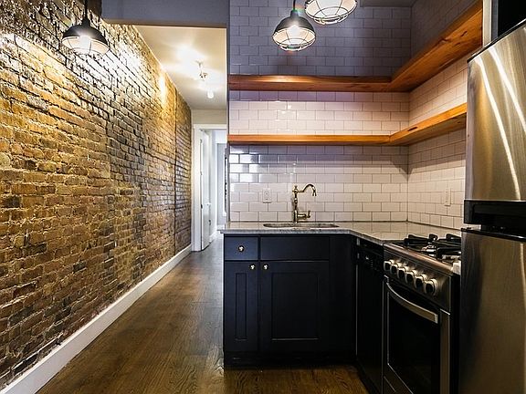 Spacious, gut renovation in a 3 story 1907 rowhouse. Exposed beams, high ceilings, skylights, industrial light fixtures and exposed brick walls enrich the apartment's appeal. The open galley kitchen is outfitted with exposed shelving, white subway tile, new stainless appliances and a vintage inspired gold faucet. Central air and an inline water heater ensure that you'll always be comfortable. Laundry hookups in the unit. Short walk to Halsey L or Wilson L!! Call Shane ASAP 646 621 1761