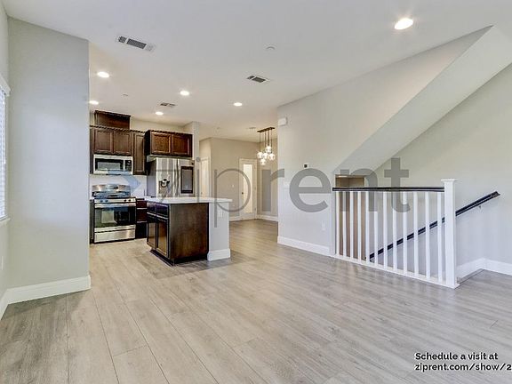 This property is an end unit and features hardwood flooring throughout, full window coverings, central heat and cooling, one bonus living room/office space, and tons of natural light. The kitchen comes fully equipped with a stainless steel smart refrigerator, dishwasher, gas stove, oven, a large island and ample cabinet and counter space. The primary bedroom features an ensuite bathroom with double vanity sinks. There are 3 additional roomy bedrooms and 2 full bathrooms. There is an attached two car garage that includes an EV Charger. There is a smart washer and dryer that is in unit for added convenience. As a bonus, there is a ring doorbell. There is an outside area that is great for enjoying the weather.