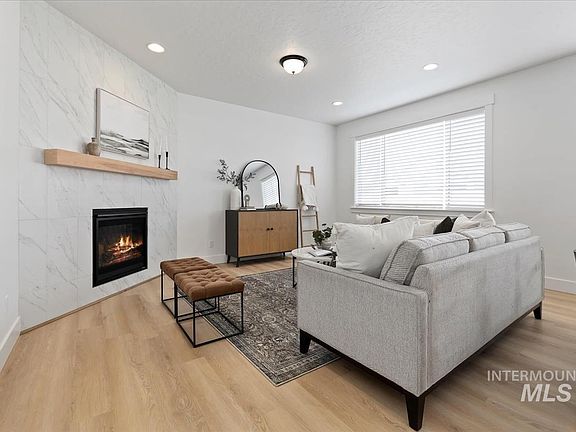 Welcome to 1258 E. Fort Erie Dr., a semi-custom 2022 build designed for style & function. With 2,468 sqft, a 3-car tandem garage, & a layout that adapts to your needs, this home is a standout in Kuna. The gourmet kitchen is a showstopper, w/ a farmhouse bib sink, stacked oven & microwave, gas range with pot filler, corner pantry & a large island that seats four, accented by elegant brushed brass fixtures. The open living space is anchored by a floor-to-ceiling fireplace with a mantel, perfect for cozy evenings. With four bedrooms and three full baths, this home offers flexibility for any lifestyle. The main-level bedroom & full bath provide a great option for guests or an office. Upstairs, the primary suite features a spa-like marble-look tiled shower & walk-in closet. Huge bonus room w/ double doors & an upstairs laundry add to the home’s convenience. Desirable Sterling Ranch has a neighborhood pool & a common area park w/ play system. Move-in ready, and designed for modern living—this one won’t last.