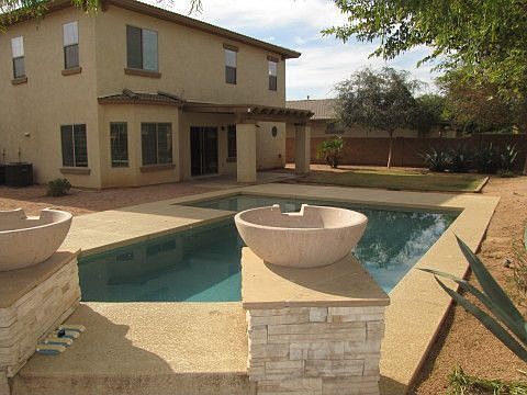 This beautiful 4 bedrooms 2.5 bathroom home is loaded with upgrades and move in ready! The large kitchen features granite counter tops, maple cabinets and tile flooring. Downstairs is all tile except for the formal living area. Nice stair railing. The backyard is perfect for entertaining and features a large pool with a large tanning shelf and water feature. Grassy area, mature landscaping and a covered patio complete the backyard oasis! This home is a must see. Plush new carpet, freshly painted! 3 car garage!