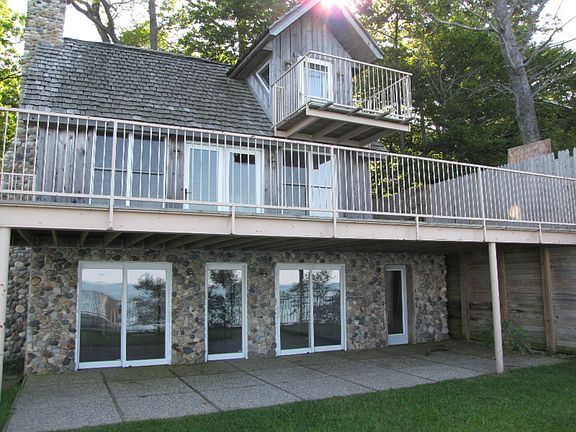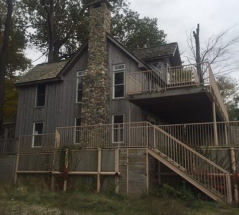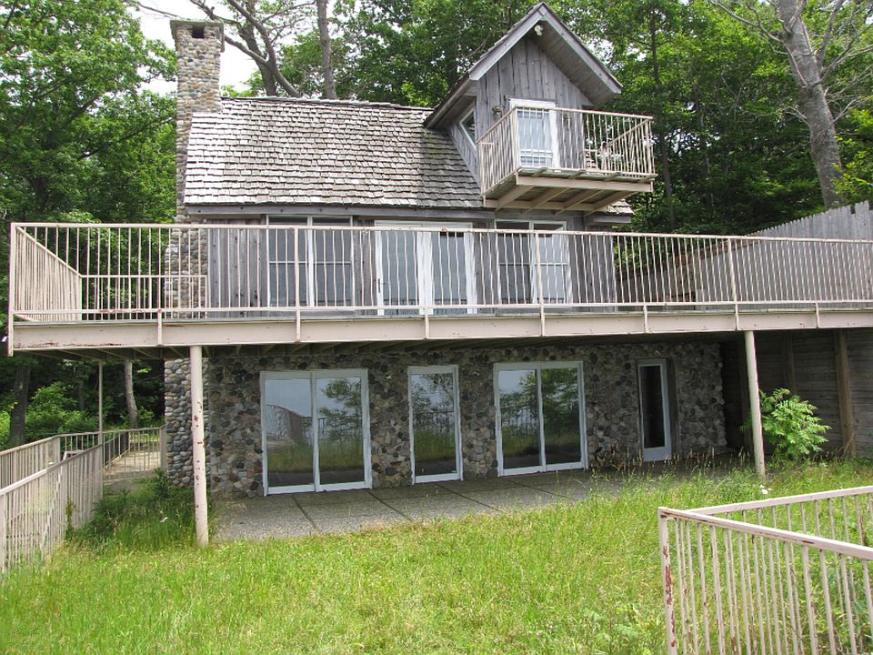 Lake Michigan Waterfront house with a Million Dollar View! This is a 3 level house with unobstructed view of Lake Michigan. 280 feet of waterfront and located at the top of a ravine with a stream on the north side running into the big lake. There are 3 levels with decks at each level. The interior is finished with cedar and Brazilian Cherry, a modern kitchen and a spiral staircase connecting all 3 levels. A very unique setting and house. Beautiful and private. This is a bargain price for Lake Michigan property. Price reflects needed repairs for erosion and retaining walls.