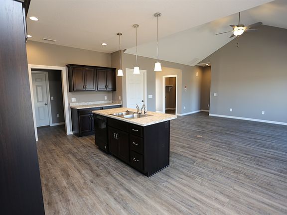 - Breakfast Bar, Kitchen Island, Walk-In Closet(s), Great Room, Laminate Counters, Cathedral Ceiling(s), Entrance Foyer, Open Floorplan, Ceiling-9+, Main Level Bedroom Suite, Split Br Floor Plan, Twin Sink Vanity, Pantry-Walk In, Custom Cabinetry