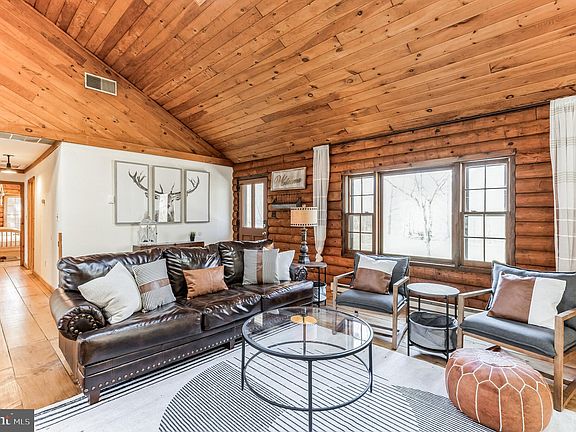 Buyer’s home sale fell through so this stunning home is back on the market! Nestled in a peaceful and serene setting, this stunning 3-bedroom, 2-bathroom log cabin is a nature-lover's dream come true. Situated on 8 wooded acres, this fully renovated property offers the ultimate escape from the hustle and bustle of city life, yet is still conveniently located near major highways including 295 and the NJ and PA turnpikes. As you step inside, you will be greeted by a warm and inviting atmosphere that showcases the beauty of the natural materials used throughout the home. The open-concept living space boasts high ceilings with new skylights, wide-plank hardwood floors, and large windows that bring in an abundance of natural light and showcase the beauty of the surrounding woods. The fully updated kitchen is a cook's delight, featuring all stainless steel appliances including a Viking gas range, butcher block countertops, and a large island with a breakfast bar and built in microwave drawer. The kitchen opens up to the dining area, perfect for hosting dinner parties or enjoying meals. The 3 spacious bedrooms offer ample closet space and a peaceful atmosphere for a good night's sleep. The primary bedroom boasts a private en-suite bathroom, complete with a fully tiled walk in shower featuring glass doors. The additional bedrooms share a full bathroom with a shower/tub combination. Other features of this incredible property include a large screened porch, perfect for enjoying your morning coffee or an evening glass of wine, a platform styled pad for grilling or relaxing, plenty of space a fire pit for cozy nights under the stars, and ample storage space for all your outdoor gear in an outdoor building with in ground septic piping. This fully renovated log cabin is an opportunity to own a piece of paradise. Don't miss out on the chance to make this dream home yours!