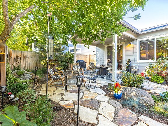 This meticulously maintained single-level gem offers the perfect blend of modern living, low maintenance, privacy and natural beauty! Earth Advantage Gold rated home certified for sustainability! It combines 1,810 sq ft of modern comfort with eco-conscious design. The interior boasts hardwood floors, stainless appliances, custom cabinets, and a spacious kitchen island, perfect for gatherings. Relax by the corner gas fireplace or retreat to the master suite with double vanities and a walk-in closet. The beautifully xeriscape landscape backyard features a covered private patio for outdoor enjoyment. With 9' ceilings, A/C readiness, a tankless water heater, and a 2-car garage, this home offers both style and functionality. Located near Hollinshead and Pine Nursery Parks, all of Bend can be conveniently accessed! Make this Earth Advantage certified gem your own and experience the best of Bend living, a must see!