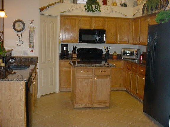 New custom tile and carpeting throughout even closets and baths. Kitchen features New Oak Center Island,New Granite Counters,extended Eating bar.Oak Center Island,New light fixtures,New granite sink,faucet and garbage disposal,New Drawer Pulls and All New Black appliances. Family room New Ceiling Fans with Dimmers, slider out to beautifully landscaped Easy care yard with extended 10 ft wide patio covering entire rear of House. Living room has Propane Gas Log Fireplace, Baths have Adult height vanitien,Comfort height toilets,upgraded lighting,faucets, and shower heads. Den with built in Desk with 2 filing cabinets. Garage has Attic Stairs to Floored storage,Plenty of shelves,work bench,and drawers,Kenmore water softener. Interior has been Freshly Painted,new Window Coverings throughtout,upgraded ceiling fans and lighting throughtout plus exterior Security lighting. This wonderful home is a must see!!!