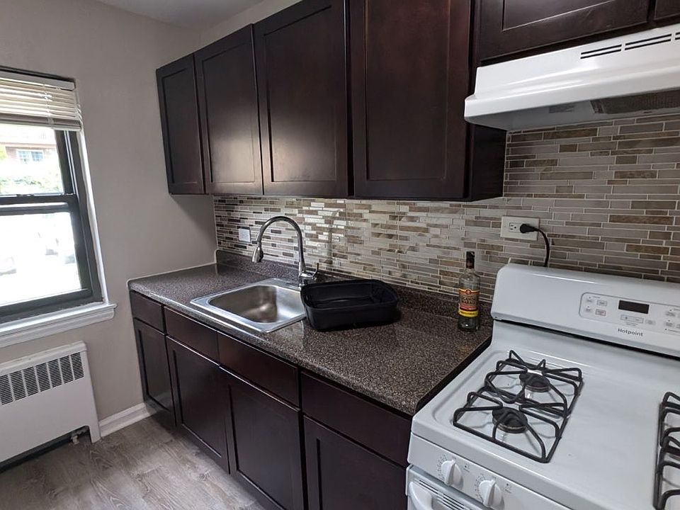 Completely renovated, 1st floor one bedroom apartment in Edgewater directly on River Rd. Apartment features hard wood floors! Conveniently located near Routes 4, 5, 46 and 80, George Washington Bridge and NYC ferry service directly off of River Rd. Ideal location for the NYC commuter! Rent includes heat, hot/cold water & one assigned parking spot. Resident superintendent. Laundry facilities available on site. Cat friendly, no dogs. Pictures are of similar apartment. Apartment ready on or before 11/1. NO REALTOR FEE Rent includes heat, hot/cold water and one parking space. Pictures are of a similar apartment. Landlord requires credit/background check and income verification for all applicants/occupants. Application fee is $50 for each applicant. Cat friendly, no dogs. No smoking.