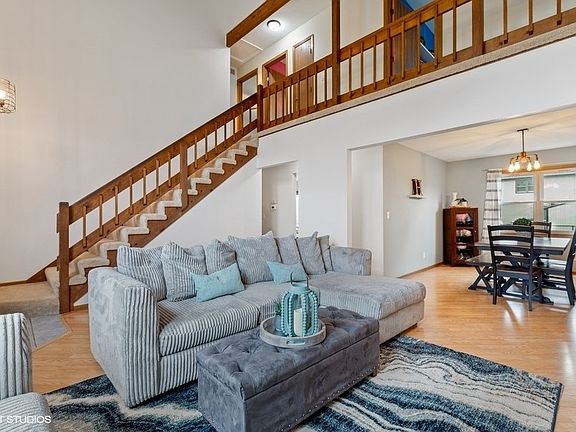 Bright and cheerful home in the heart of Four Colonies. Close to High School and beautiful parks this home has a fantastic location in the center of Crystal Lake! Freshly painted, open concept with lovely curb appeal. 2 Story vaulted family room is large and spacious, offers sweeping views of the rest of the this immaculate residence. Open dining room off the family room provides a great area to eat and entertain! Cozy kitchen with new appliances, bar seating and plenty of countertop space! Also open to a charming family room overlooking patio and gardens! 2 car garage, 1/2 bath and laundry-mudroom complete the first floor with lots of storage! 2nd floors offers lovely balcony and 3 ample bedrooms with a newly updated bath! Nuts and bolts are newer as well, HVAC from 2020 and a new washer/dryer too! So much to enjoy in this charming property! Well cared for and ready to move in!