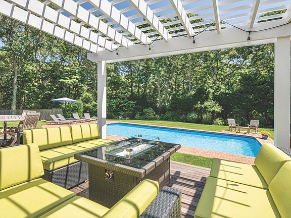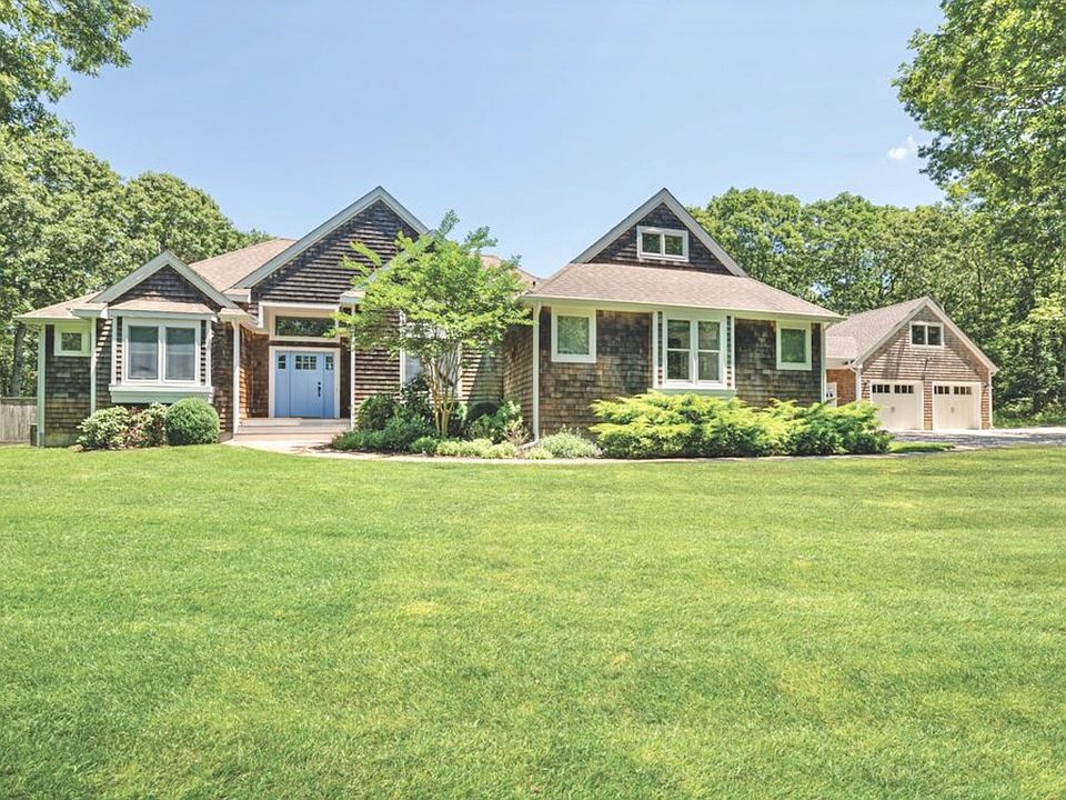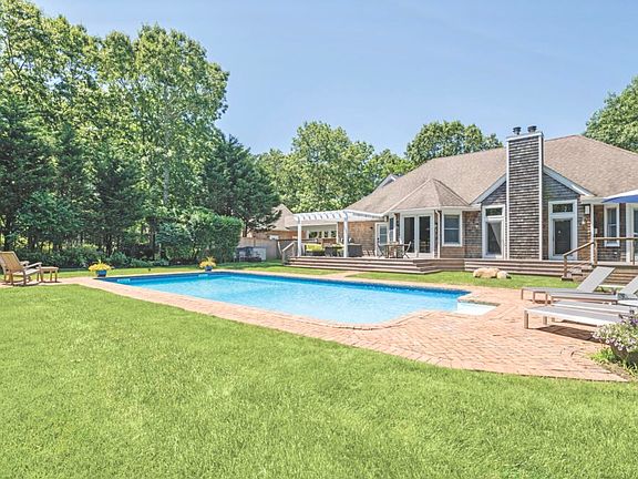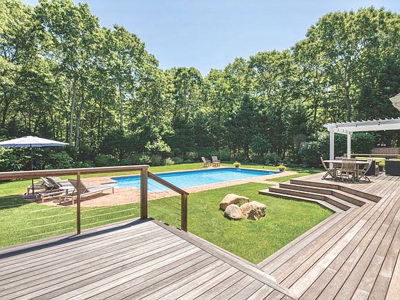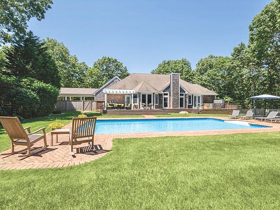 Situated on approximately 1.4 acres adjacent to a reserve just two miles to Sag Harbor Village, this home was originally built in 2000 and renovated and expanded in 2018 and 2019, now offering approximately 3,000 sf of living space with four bedrooms, four bathrooms, a home office and an art studio. What was an ordinary home has been transformed into a spacious, light-filled residence. Enter from the foyer to open concept living areas where the living room with soaring cathedral ceiling and gas fireplace flows to a dining area with glass doors to an expansive deck, and the eat-in kitchen with granite countertops, island with seating and stainless steel appliances. One of two master suites has two walk-in closets, French doors to a hot tub on the deck, and bath with skylight, soaking tub, double quartz-top vanity, porcelain flooring and frameless glass-enclosed shower. The second master suite has custom built-in cabinetry, two walk-in closets, gas fireplace, wide plank hardwood flooring and bath with quartz-topped double vanity and herringbone marble tile floor in the glass-enclosed shower. One guest bedroom has an en suite bath with porcelain flooring, quartz-top vanity and river rock floor in the shower. This bathroom is accessible from the pool and deck area providing convenience while entertaining. The final guest bedroom has a newly renovated bath with custom cabinetry just around the corner. The ample sized home office could be used as a fifth bedroom. There is a mudroom with custom built-in bench, cubbies and washer and dryer just inside the side entrance of the home. The lofted art studio is ventilated and has a slop sink and custom shelving. The lower level could easily be finished to add approximately 2,000 sf of living space. Above the detached two-car garage is a ~600sf studio which also could be finished. Outdoors enjoy the spacious mahogany deck overlooking the 20x40 heated pool, and featuring a seating area under a pergola - ideal for entertaining. The home is supported by a 20Kw whole house generator. Other improvements include a new hot tub, new outdoor shower, all new or recently new mechanicals and appliances, new fencing and extensive landscaping. Truly turn key.