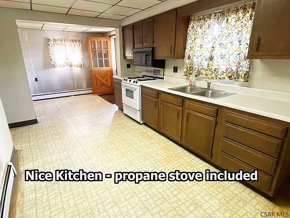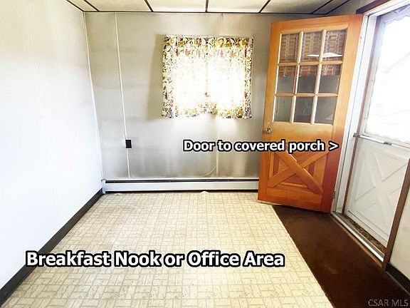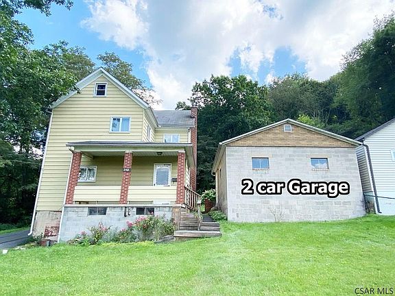 Affordable 2-3 Bedroom two story home on a corner lot in Franklin Borough - Conemaugh Valley School District. Nice front yard with pretty view from the covered front porch. Large Kitchen with breakfast nook (or could be office area) - propane gas stove. Living Room with double closet & open staircase. 3 Bedrooms on the 2nd floor. Full Bathroom (captive through Bedroom 3). 2 car detached Garage - 1 side has an automatic opener. Oil hot water heat (boiler 2015), 100 amp circuit breaker box. Shower stall & toilet in the Basement. Laundry hookups & utility sink in the Basement.