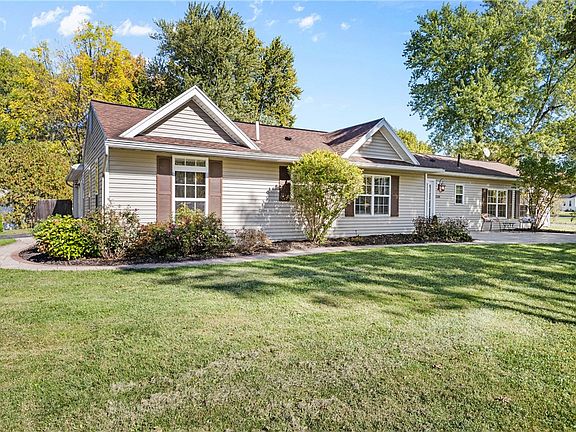 BEAUTIFULLY UPDATED RANCH IN WEBSTER VILLAGE*WELCOME TO THIS STUNNING 1723 SQ FT RANCH OFFERING MODERN COMFORT AND STYLISH UPDATES THROUGHOUT*FEATURING 3 BEDROOMS AND 2.5 BATHS, INCLUDING A PRIMARY EN SUITE*THIS HOME SHOWCASES AN OPEN CONCEPT LAYOUT HIGHLIGHTED BY CATHEDRAL CEILINGS, RECESSED LIGHTING AND A BRAND NEW GAS FIREPLACE WITH A STRIKING LEDGER STONE WALL*THE LIVING AREA ALSO INCLUDES A WET BAR WITH WINE CHILLER, CREATING AN IDEAL SPACE FOR GATHERINGS*THE SPACIOUS KITCHEN IS A CHEF’S DREAM, FEATURING GRANITE COUNTERTOPS, AN OVERSIZED ISLAND WITH PENDANT LIGHTING, A BRAND NEW GLASS TILE BACKSPLASH, AND A CONVENIENT DOOR LEADING TO A STAMPED CONCRETE PATIO-PERFECT FOR ENTERTAINING*MAIN FLOOR LAUNDRY ROOM WITH INCLUDED APPLIANCES AND WASH SINK*ADDITIONAL HIGHLIGHTS INCLUDE NEW PORCELAIN PLANK FLOORING IN THE LIVING ROOM AND ALL BEDROOMS, FRESHLY PAINTED WALLS AND CEILINGS THROUGHOUT, A NEW SECURITY SYSTEM AND PANELS, AND UPGRADED, ALL NEW ATTIC INSULATION FOR IMPROVED EFFICIENCY*OUTSIDE, A MEANDERING STAMPED CONCRETE WALKWAY WELCOMES YOU TO THE FRONT DOOR, WHILE A SHED PROVIDES EXTRA STORAGE*THE MAIN DRIVEWAY IS CONVENIENTLY LOCATED ON IROQUOIS, WITH AN ADDITIONAL PARKING AREA/DRIVEWAY ON STATE*CHECK OUT THE DOUBLE GARAGE DOORS, WHICH OPEN TO THE BACKYARD PATIO*WITH OVER $45,000 IN RECENT IMPROVEMENTS, THIS MOVE-IN READY RANCH BLENDS MODERN STYLE, THOUGHTFUL DESIGN, AND VILLAGE LIVING AT ITS BEST*DELAYED NEGOTIATIONS, TUESDAY OCTOBER 21 AT 2 PM*