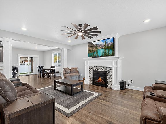 Completed in 2020, this modern farmhouse in Farr West offers 4 bedrooms, 2.5 baths and an oversized, fully finished garage that doubles as a shop, complete with heating and air conditioning, 220 power and a built-in air compressor. The light, open main level features a spacious great room and island kitchen with generous dining space and backyard views, while the main-floor primary suite sits privately at the back of the home with a walk-in closet and en-suite bath. Upstairs there are three additional bedrooms plus a flexible loft for an office, playroom or second living area. Outside, enjoy a covered patio, fully fenced 0.34-acre lot and convenient access to amenities and commuter routes. Square footage figures are provided as a courtesy estimate only and were obtained from county records. Buyer is advised to obtain an independent measurement.