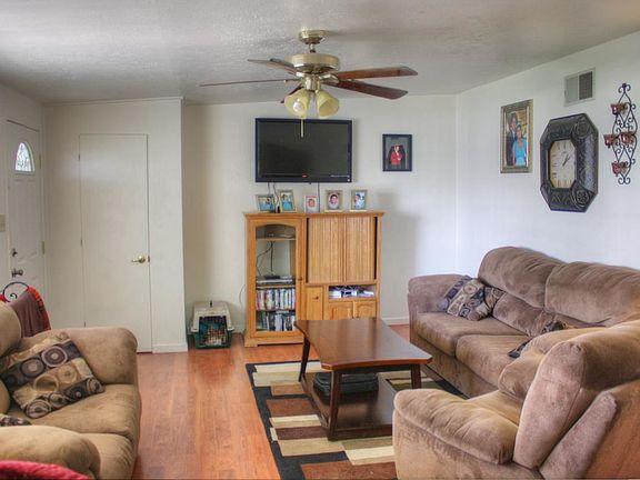 Pride of ownership and centrally located. 4 bedrooms 2 full baths hardwood floors throughout carpeted bedrooms large covered patio beautiful backyard with storage building large rolling gate to the alley and single gate to the front. Large inside laundry room. $119 000.