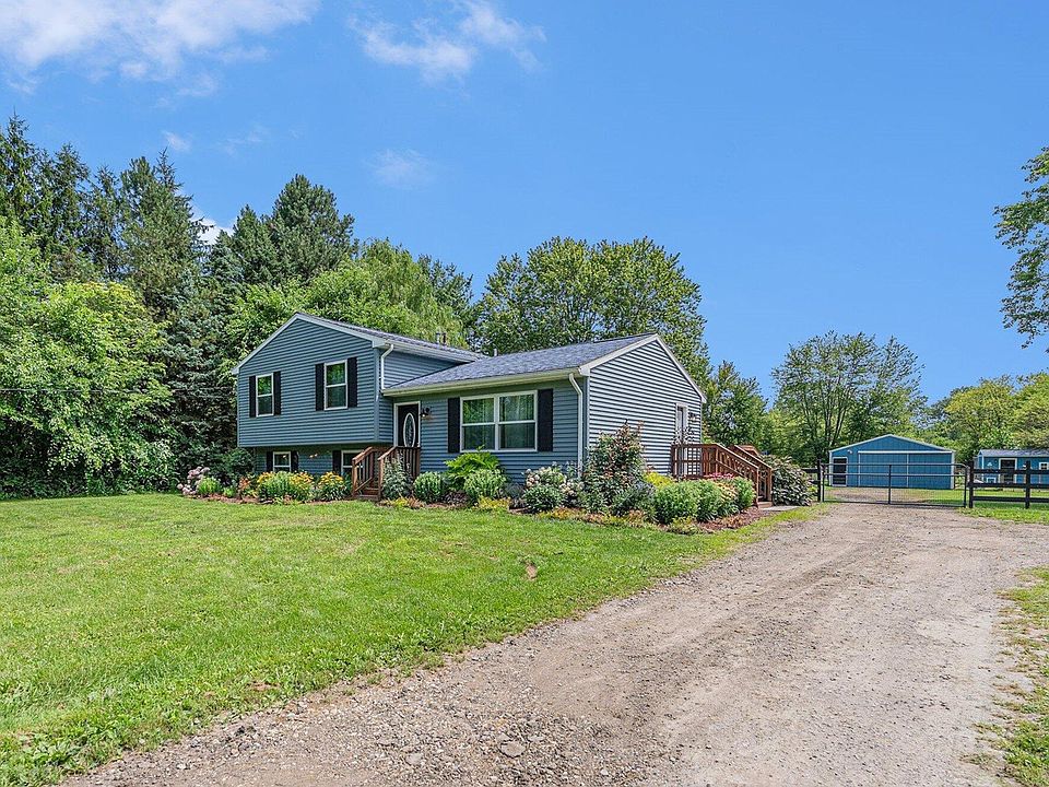 This 4-bedroom, 2.5-bath tri-level home, nestled on 1.5 acres in Milan is ready to impress! Every detail of this home has been meticulously upgraded to offer the perfect blend of style and comfort. The kitchen shines with Kraftmaid cabinets featuring pullouts, premium granite counters, a custom range vent hood, and top-of-the-line stainless steel appliances. The sunroom, with its ceramic tile floors and skylights, provides a serene view of the lush backyard and deck with an above-ground pool. The lower-level primary suite is a luxurious retreat with walk-in closets and a bathroom featuring heated floors, a stand-up shower, and an elegant soaking tub. Upstairs, you'll find a secondary bedroom suite with a half bath, two additional bedrooms, and a full bath adorned with decorative tile. The expansive pole barn offers ample storage space for all your toys, and your chickens will thrive in their custom resort style coop with an automatic door. All the heavy lifting has been done with significant updates in 2021 including vinyl siding, new windows, a hot water tank, furnace & AC, and an electrical panel. Milan schools and Milan Township taxes.