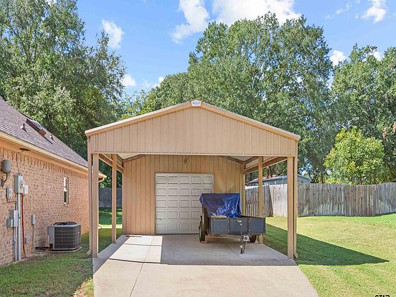 Looking for a home just outside the city with a large yard and private street? This is it! One owner home built in 2008 in Redfern Estates has just become available for you to visit and make your own. Neighborhood consists of just this one street, so there is no through traffic. Large 1/2 acre lot! Upon entry you will find 12 inch tile throughout the foyer, living room and kitchen. Living room has 10 ft ceilings, stacked crown molding, and corner fireplace. BOSE surround sound speakers stay behind! Kitchen features granite countertops, matching SS appliances, hidden spice rack and Professional Series Frigidaire cooktop/oven combo. Eat-in area with windows surrounding it. Huge master is just off the kitchen with en suite bathroom featuring large soaking tub, separate shower, lighted vanity and two walk-in closets. Home has a private office with built-in desk & shelves as well as 3 additional bedrooms. Split floorplan. Backyard has fabulous covered patio that faces the woods behind the property. Such a great place to relax & unwind. And did we mention the shop?! Metal shop and carport are truly a handyman's delight! The epoxy floors, built-in shelving & pegboard wall will help you stay organized. This gives you 5 total covered parking spaces. New roof in September 2024, new aerator pump September 2024. See list of updates & upgrades for more. This home is beckoning you to come, and stay a while.
