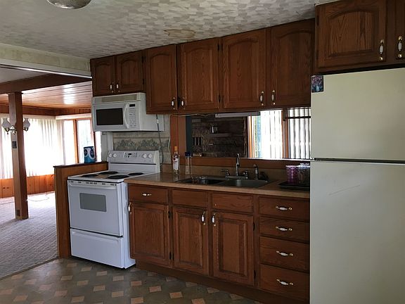 Lake Wawasee has over 3,000 acres of all-sports recreation. Hotels, marinas, gas stations, public beaches, restaurants and bars, entertainment and even a Sunday morning floating church service can be found on Indianas largest natural lake. Located in North Central Indiana just 2.5 hours from Chicago, less than 3 hours from Indianapolis and 1 hour from Ft. Wayne. 2 Bedroom, 1 bath 928 square foot home on 290 foot peninsula channel lot with boat slip and detached 2 car garage. Home details: Built in 1938, updated in the 1980s, the enclosed porch was opened up and finished off as a 4 season room with stone fireplace and pass through window to the kitchen. Tongue and groove wood ceilings. Open kitchen and dinette, water views from every window. Gas forced HVAC. Detached 2 car garage has a 2 season screened porch with lake views. Level lot with parking for 6+ cars. Rare boat slip (Grandfathered) is 10.5 wide and 12.5 long. Lot sits at the end of a peninsula surrounded on 3 sides by 290 of water. Less than 200 from All-Sports Lake Wawasee via a wide, deep very clean channel under 2 footbridges with over a 70 clearance (pontoons fit), 4 well and community sewer.