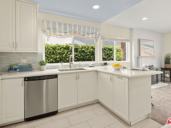 Welcome to this warm and inviting 3-bedroom, 2-bathroom (PLUS den/office), retreat tucked away on a quiet cul-de-sac street, a hidden gem within the Del Rey neighborhood. As you step inside the double-door entrance, you're greeted by a spacious formal living room, perfect for relaxing or entertaining. The adjacent dining room/den/office leads to a remodeled kitchen featuring quartz countertops, abundant storage, stainless-steel appliances, and breakfast bar. The kitchen flows into a cozy living area with fireplace and a sliding glass door leading to the covered back patio and landscaped yard. The primary suite, with a double-door entry, offers a tranquil escape, featuring a recently remodeled ensuite bathroom and two large walk-in closets with mirrored doors. Continuing down the hallway, you'll find plentiful cabinets and another storage closet. Two additional spacious bedrooms include large closets with mirrored doors and large windows overlooking the lush backyard landscaping. Dual-pane windows throughout the home ensure peace and quiet. The backyard provides space for dining, entertaining, and enjoying the California sunshine, while the front yard is beautifully landscaped with rich greenery and a large lemon tree. Additional perks include large two-car garage with EV charger, a gated entryway, as well as a security camera system for added peace of mind, newer HVAC system and a washer/dryer area in the garage. Located near Playa Vista, Marina del Rey, and Culver City, this home offers easy access to Ballona creek bike path, beaches, and LAX. Available for immediate occupancy.