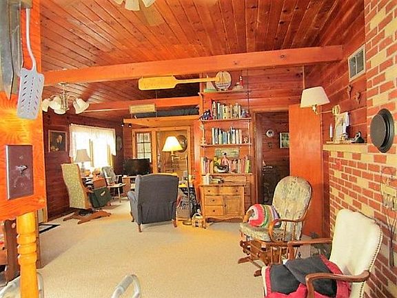 Gently sloping lot to the 101 ft. of frontage. You will enjoy a full view of the lake from the kitchen, dining area, living room and bedroom. The warmth of the knotty pine vaulted ceiling and walls radiates throughout. Ceramic tile bath/shower, and laundry. The 2007 addition provides 2 larger bedrooms. You won't want to miss the unique hanging sleeping loft. Detached garage and lawn mower shed. This spectacular offering can be your permanent residence or that marvelous getaway retreat. 2 Gas Forced Air Furnaces plus Central Air.