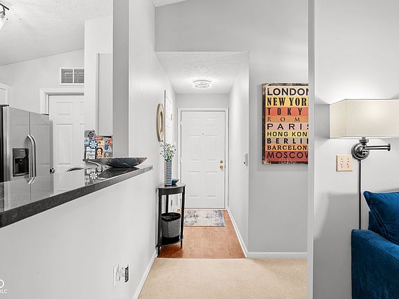 Experience low maintenance and convenience in this immaculate 2-bedroom, 2-bath condo, perfectly situated in the sought-after Carmel Pointe community. You'll love the fireplace in the winter months & the open layout. Recent updates include a beautiful primary bath renovation featuring custom tile and granite vanities, as well as the beautifully upgraded kitchen with modern cabinetry, granite countertops, a custom backsplash and newer appliances. Nestled off Illinois and Carmel Drive, this neighborhood offers a prime location with easy access to everything Carmel has to offer plus amenities like a pool to enjoy each summer. Take in the scenic water view from your covered balcony. This unit comes with a one-car garage and an assigned parking space (#28). Don't miss this exceptional opportunity!