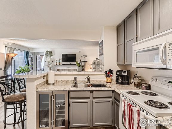 DON'T MISS SEEING THIS PERFECT GROUND FLOOR, RANCH STYLE CONDO WITH ALL APPLIANCES INCLUDED! This is a great move-in-ready Colorado condo that you can reasonably own and avoid the cost of renting. Featuring an open floor plan, a welcoming fireplace, two spacious bedrooms with an easy access bathroom. This property is in a prime location with extra windows allowing for lots of natural light. It has a practical floor plan that flows nicely throughout the space and well-maintained appliances and fixtures. The attached garage with an additional parking lot pass for a second car makes this a super buy and rare find at this price! It features a great patio for enjoying your coffee in the morning or sitting and relaxing after a hard day. The HOA includes water, trash, snow removal, a dog park and a pool that is open during the summer months and with-in line of sight from this condo. This property is close to I-225, light rail, shopping, and a wide array of dining!