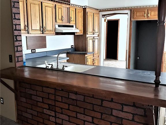 This 3-bedroom/2-bath manufactured ranch is located on a 1.9 acre country setting. It features oak kitchen with gas or electric hookups for stove, snack bar, and breakfast nook/dining room; 16 x 16 living room; 16 x 16 family room/bedroom; master bedroom with master bath and walk-in closet; main-floor laundry; back deck; 100 amp electric service; attached 2.5-car garage; vinyl siding; new metal roof; large pond; some TLC needed.