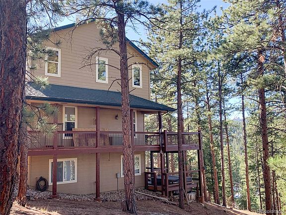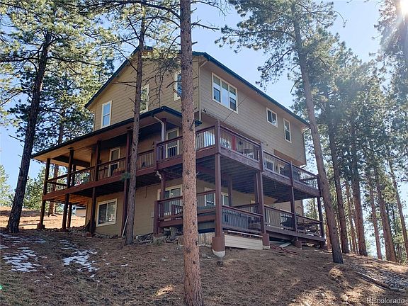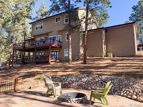 Sedalia Colorado - amazing mountain retreat with city convenience only 30 minutes away. Head up to your private mountain sanctuary situated on two acres with some of the finest Continental Divide views in the area. Two-story with walkout basement has a welcoming main floor living space with kitchen, dining, study and great room. The owner suite with ensuite bath is on the upper floor. There are two additional bedrooms on the upper floor adjacent to a full bath. The walkout basement is complete with another bedroom and adjacent ¾ bath, entertainment room with a wet bar and an exercise area. Outdoor living space for year-round enjoyment with covered wrap around deck, built-in hot tub and large patio with wood burning fire pit. This peaceful and quaint neighborhood is surrounded by the Pike National Forest which offers endless recreation opportunities. Property has easy year-round access and is just a ½ mile to the paved county road. The home has been very well maintained and is move-in ready. With what is happening in the WORLD a rural property is the best escape. This home is priced for a quick sale so don't hesitate to schedule a showing today. Make sure to view the Virtual tour and Matterport Virtual Walk-Through.