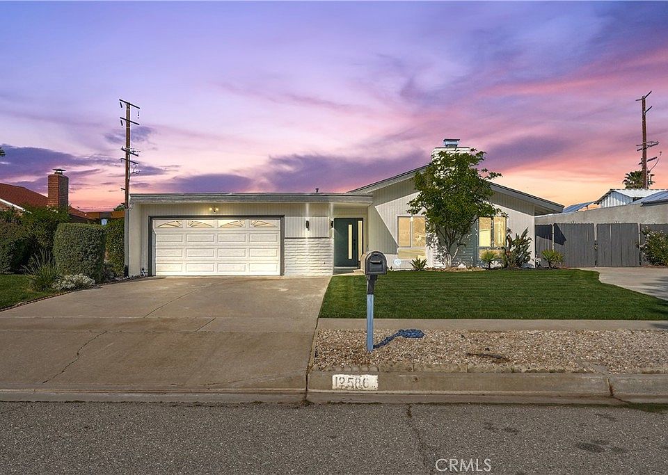 This fully remodeled single-story residence offers 4 bedrooms, 2 bathrooms, and 1,665 square feet of thoughtfully designed living space. The open floor plan highlights vaulted ceilings, new hardwood flooring, and abundant natural light throughout. The spacious living room includes a gas fireplace, expansive windows overlooking the landscaped front yard, and direct access to the backyard patio. The remodeled kitchen opens to the dining area and features white quartz countertops, new stainless steel appliances, a breakfast bar, and multiple windows. A sliding glass door connects the dining area to the backyard patio, providing a seamless indoor-outdoor flow. Adjacent to the kitchen, a private courtyard has been transformed into a peaceful outdoor space, complete with a water fountain feature. The primary suite is located at the rear of the home and includes two closets and an en-suite bathroom with dual sinks, a walk-in shower, and tile flooring. The second bathroom also features updated finishes and tile flooring. Three additional bedrooms are centrally located, with one offering views of the courtyard. Situated on an 8,160-square-foot lot, the property features mature landscaping, an orange tree, an avocado tree, and a well-maintained backyard lawn. Additional highlights include fresh exterior paint, new dual-pane windows throughout, and a two-car garage with laundry hookups.